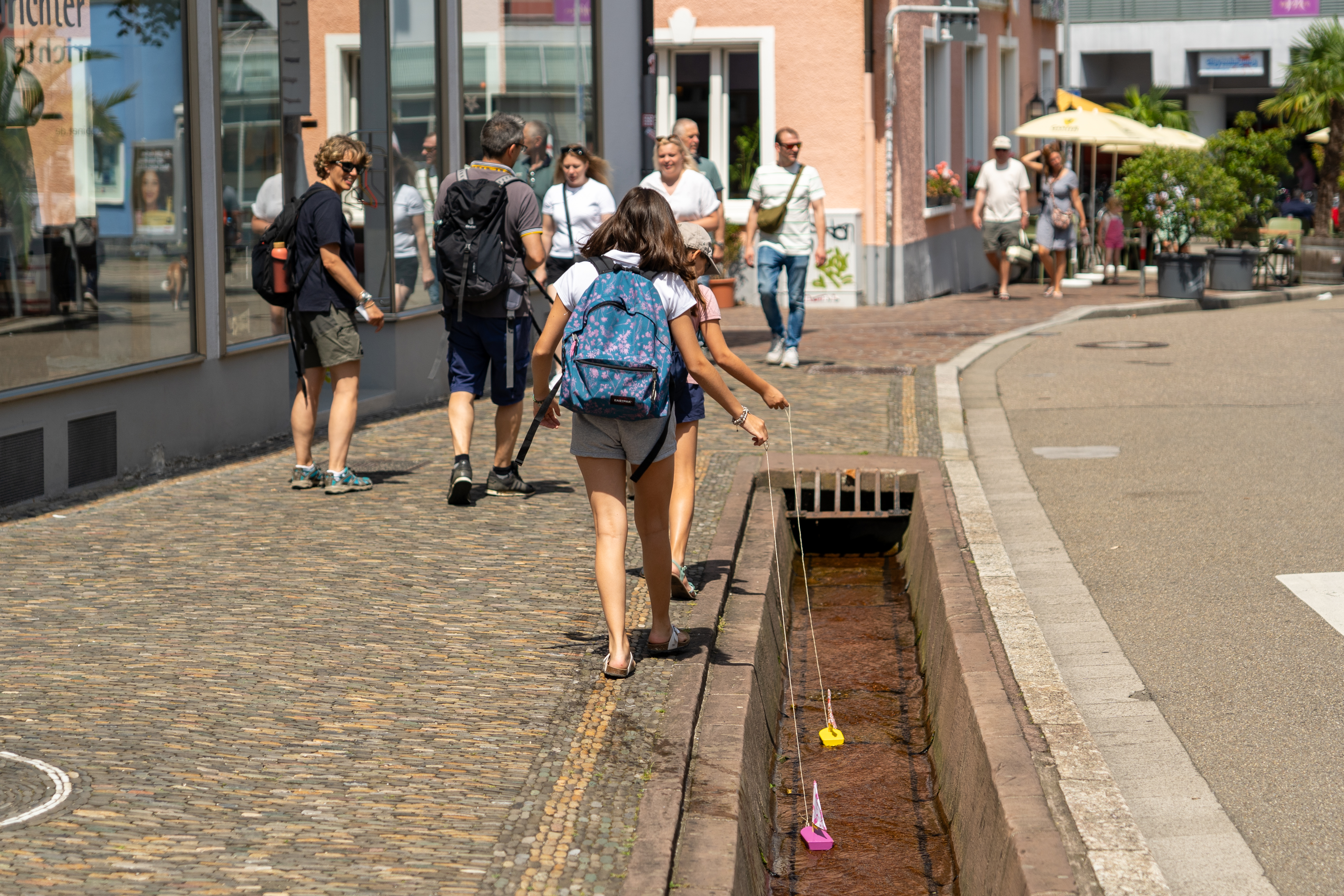 The Bächle continued to be developed throughout Freiburg until the mid-19th century. For a long time, it served as an important source of water, used for livestock, daily needs, and firefighting. During the British bombing raids of 1944, fires that broke out across the city were quickly extinguished thanks to the Bächle. In line with the city’s policy of restoring destroyed buildings to their original form, the Bächle, too, was rebuilt to reflect its medieval design. Beginning in the 1970s, with the rise of eco-friendly urban development, the Bächle’s role in regulating the city’s climate was rediscovered and appreciated anew.